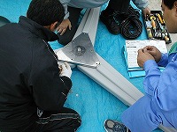 ![]() 養殖・釣堀対応タイプ 水車に変わる画期的な水質管理技術です。 自然の力で水質を浄化! わずか25Wの電力で、15t/分の循環対流を起こす。 リプル25 (同装置1基で、水深1mなら3000u、1.5mなら1500u、2mなら750uの池をカバーできます。) ◆養殖・釣堀の現況 ウナギやクルマエビなどの養殖池は、一般的に換水率が低く、残餌や糞が底に堆積しやすい。水車を回すことでDO(溶存酸素)を維持する方法が主流だが、水車では底から水面までの十分な水の対流をつくることは難しく、時間の経過とともに池底にはヘドロが溜まり、嫌気性のバクテリアも増えがちだ。 ◆新たな発想で水底の嫌気化を改善 こうした半止水的な養殖池において、これまでとはまったく違う発想に基づいて、池水に十分な溶存酸素を供給し、池底も好気性の分解微生物に変えていく。(株)アクアテックジャパン(東京・東村山市、田中英男社長)がこの装置の製造を開始した。 ◆リプルの特許について 同社が発売を開始した「水底活性耕水機 リプル25」は、元・武蔵工業大学教授(物理学)の稲葉宏哉氏と同社が共同開発したもので、この装置の原理については、稲葉氏が[特許3360075号]を取得済み。 ◆活魚の専門家田中社長が惚れ込んだ。 潟Aクアテックジャパンは、首都圏における活魚の取扱いで有名な (株)ふいっしゅいんてりあ の水処理事業部を分離独立した会社である。両社の社長を務める田中氏は、エアレーション設備の専門家である。その田中社長がこの技術に出会い、「これまで様々なエアレーション機器を見てきたが、最も大きな衝撃を受けた。悪者扱いされてきた窒素やリンなどのヘドロの成分を、プランクトンや微生物の重要な栄養源として、自然の浄化作用を利用し、DOも十分に供給しようというのが、この装置の特徴だ。その上、消費電力はわずか25Wと、水車に比べて大幅に少ないので、光熱費を大きく削減できる。さらに作動音が静かなので、騒音に対する苦情の心配もない」と話す。 ◆同装置の原理を簡潔に記す(写真と図参照)。 (1)直径1.8mの同装置(PP製)を、ロープやアンカーで固定し、水面に浮かべる。 (2)3方向に突き出たアーム(フロートの役目も担う)が、装置の中心を軸として6回転/分の速度で回 転。このアームに付いているアルミ製の羽根が、水面近くの水を、装置の中心から外側へ放射状に水平方向に押し出す。 (3)装置から放射状に押し出される水量は15t/分で、その分、池底から装置に向かって水が上昇し、池全体に大きな循環対流が生まれる。 (4)上昇してきた水は、水面で酸素を取り込むと同時に、太陽光線により水中のプランクトンの光合成が活性化、さらに紫外線による殺菌効果が得られる。 (5)DOを十分に含んだ水は池底の嫌気性ヘドロに接触し、これに代わって好気性の分解微生物を増殖させ、水質が改善される。 田中氏談 「水車を使い慣れていると、たったこれだけの装置で本当にDOが十分に供給されるのかと不安かもしれないが、その効果は実験で確かめられており、太鼓判を押せる」と田中社長。 ![]() 「リプル25」による水質浄化のメカニズム 製造 (株)アクアテックジャパン 〒189-0002 東京都東村山市青葉町1-10-17 TEL 042-392-5525 FAX 042-392-5801 http://www.aquatech-japan.com