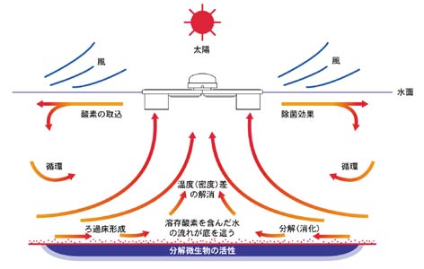 湖沼・池・ダム湖・排水機場等、滞留している水をゆっくり動かす 浮遊型省エネ耕水機「バイオファン」「リプル」 |