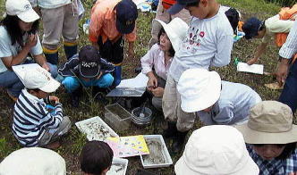 | 金杉川に生息する生物を、 みんなで採集しました。 アメンボ、コオイムシ、マツモムシ、ヨシノボリ、 カダヤシ、カワニナ、サカマキガイ、ヨコエビ、 カゲロウの幼虫等々、 もっと探したらもっとたくさんの生物に 会えそうな金杉川でした。 |