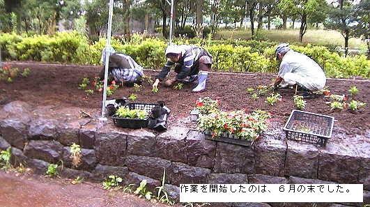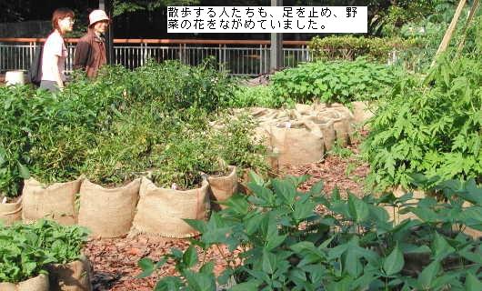 NPOとんぼエコオフィスが千葉県の公募事業に企画を提案し採択された、県立行田公園の「花壇作り」の作業が一段落し、ハーブの西側花壇と、野菜の花畑の東側花壇が完成しました。今、野菜の花畑では、ナスやトマト、ピーマンやトウガラシが花をつけ、とてもにぎやかです。
